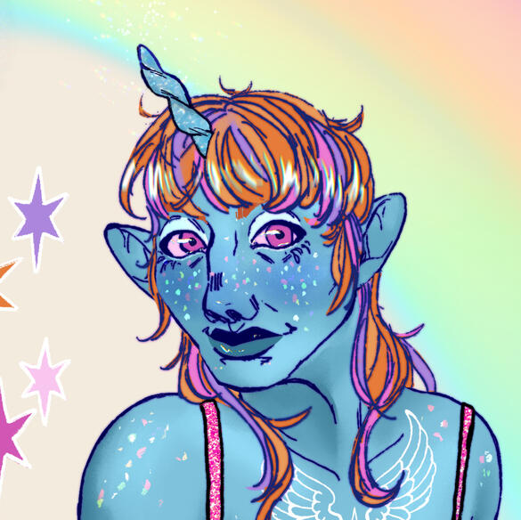 Enfys has seen the world, and then once over again. they're a seasoned adventurer that's worn every face, seen every rise and fall, and feels as though they've met every person. But not even the gods could keep them from trying to prove that wrong. after retiring from adventuring they became a performer in faerun, well known for their unique appearance. returning to the feywild is always an option, but that's no fun, is it? the people and constraints of the material plane make everything more fun. the stakes are higher, and the people more unpredictable, at least to a fey.